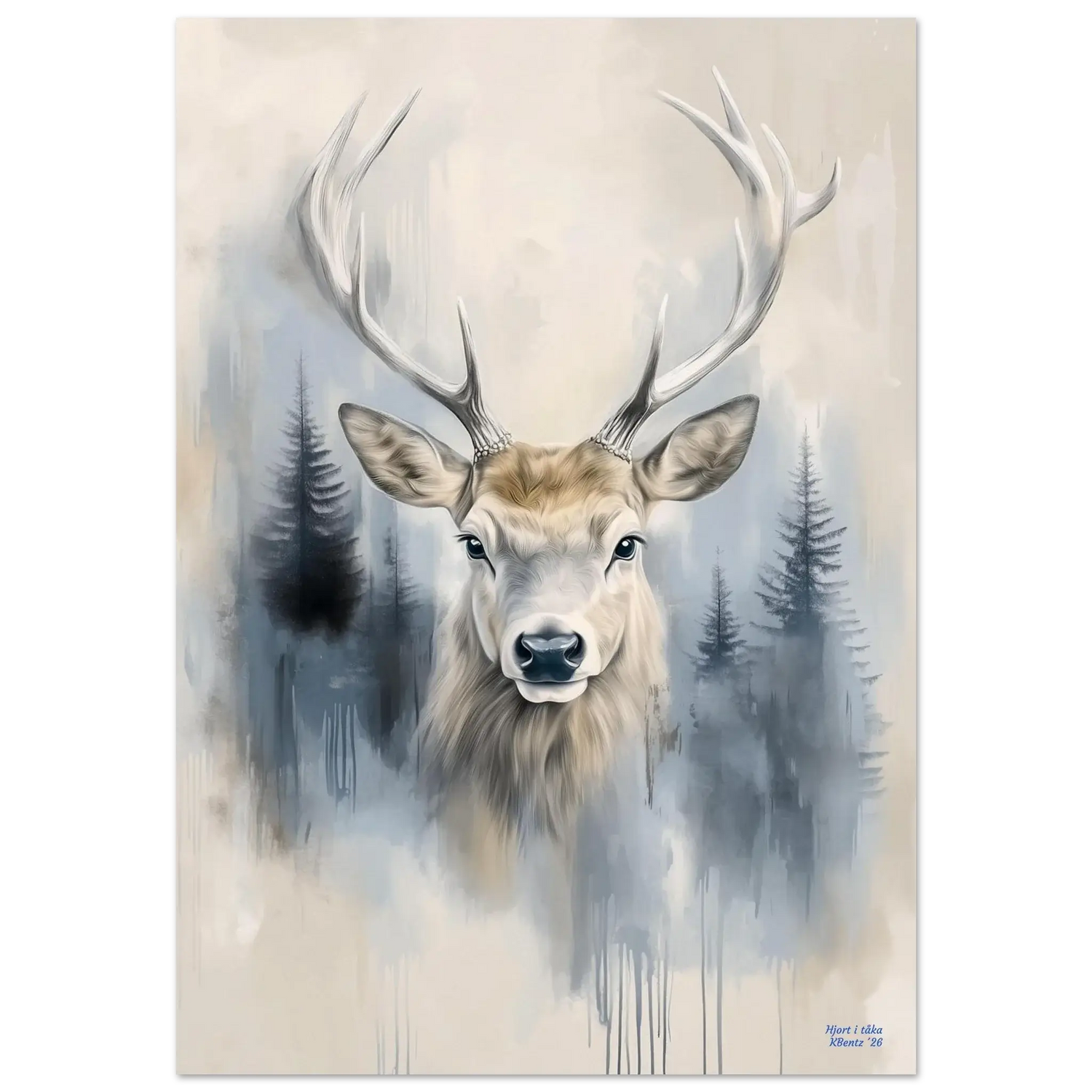 Hjort i tåka – Mystikk og ro – nordisk veggkunst